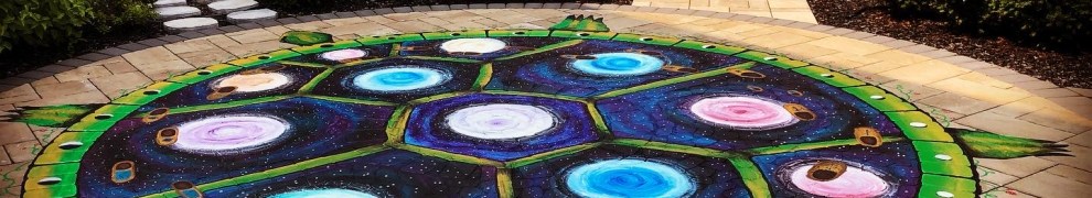 Following the natural shapes of the stone surfaces, I painted the turtle’s back as the foundation of all life and around its shell, them moccasins of the people. The people who are now our ancestors, the people of today and the people of the faces yet to come. Along its platelets, I honoured the thirteen moons and all their phases. These images invited in our Grandmother Moon teachings, reminding us that we are all part of the natural transition, growth and change in life.
